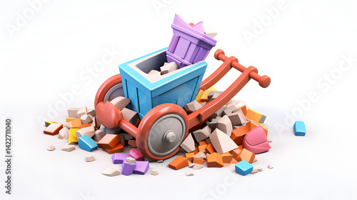 © arnanda, Fototapeta premium Pushcart damaged colorful isometric 3D
