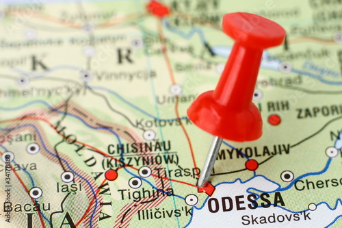 Obraz premium Pushpin on the map - Odessa, Ukraine