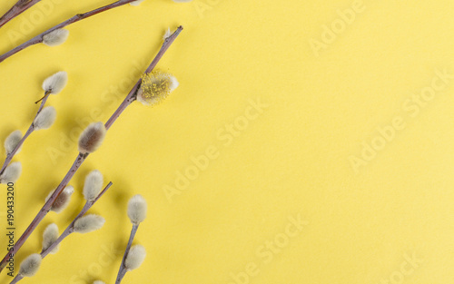 © Ayman Alakhras, Fototapeta premium Pussy Willow flowers on yellow background