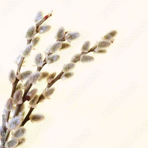 © Fedoruk, Obraz premium Pussy willow twigs isolated on a beige background