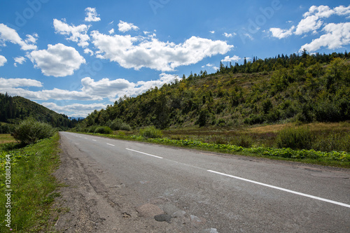 © Roman Rvachov, Naklejka premium Pusta droga i góry na tle pochmurnego nieba