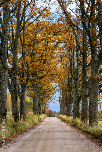 © Martins Vanags, Fototapeta premium pusta droga na wsi jesienią. nawierzchnia żwirowa