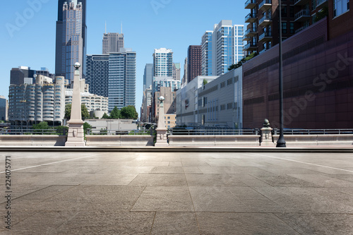 © zhu difeng, Obraz premium pusta ulica przez nowoczesne miasto w chicago
