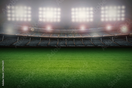 © phonlamaiphoto, Obraz premium puste boisko do piłki nożnej ze stadionem w nocy
