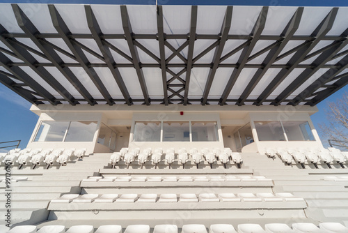 © dechevm, Obraz premium puste trybuny na stadionie piłkarskim