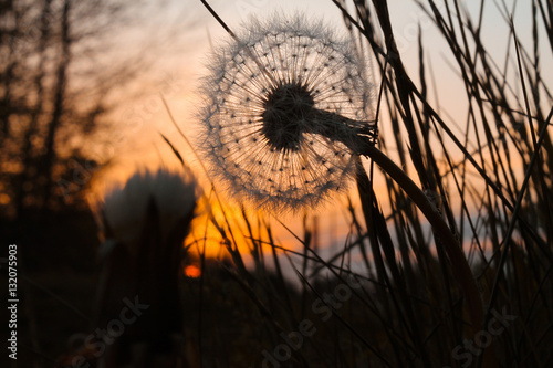 Fototapeta premium Pusteblume bei Sonnenuntergang