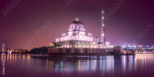 © boule1301, Fototapeta premium Putra Mosque with night lighting in Putrajaya