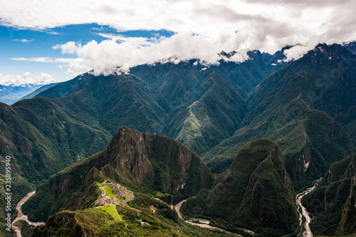Naklejka premium Putucusi and Urubamba River as seen from Machu Picchu Mountain