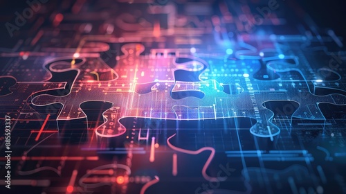 © Tunsale, Obraz premium Puzzle digital sheet. Business strategy and social media diagram