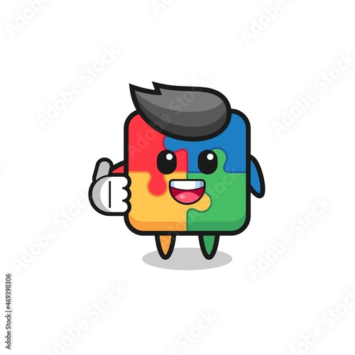 © heriyusuf, Fototapeta premium puzzle mascot doing thumbs up gesture