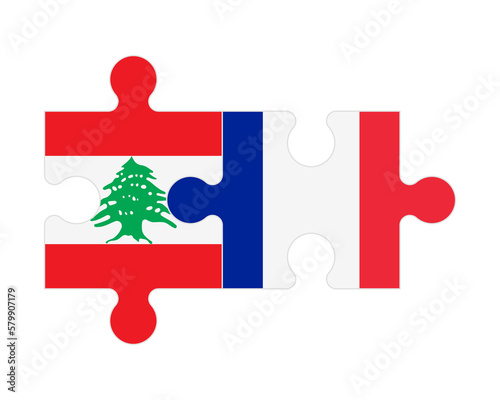 © gladder, Obraz premium Puzzle of flags of Lebanon and France , vector