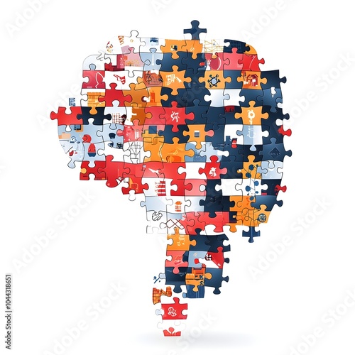 © Heng Heng - AI Stock, Obraz premium Puzzle pieces assembling into the shape of a brain representing the creative problem solving process flat design on a white background