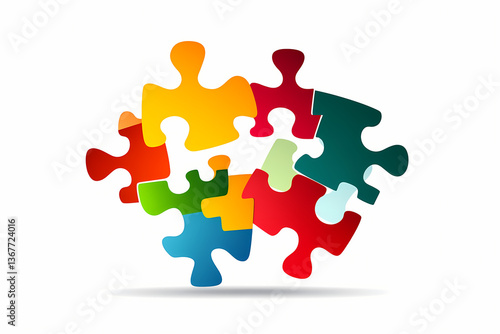 © Hafiz, Obraz premium Puzzle pieces fitting together collaboration vector logo design