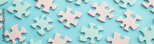 Obraz premium Puzzle pieces laying on blue surface creative activity focus calm environment...