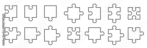 Obraz premium Puzzle Pieces Outline Vector Icon Set