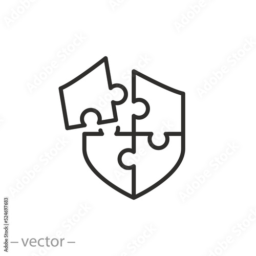 Fototapeta premium puzzle shield icon, cyberspace safety, virus security, protect solution, thin...