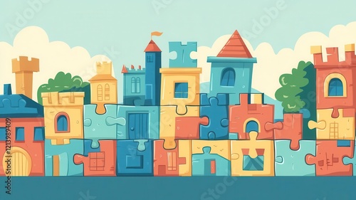 © Naput, Obraz premium puzzle-solving flat design front view adventure theme cartoon drawing