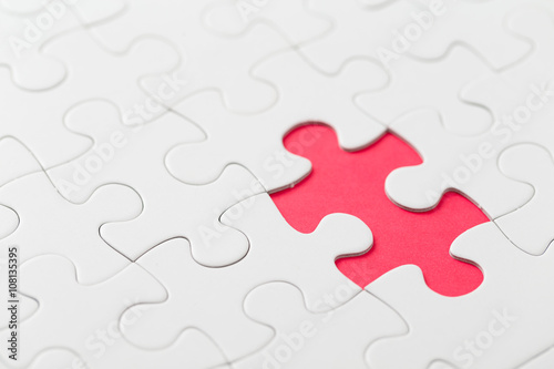 © leungchopan, Obraz premium Puzzle with missing part on red background