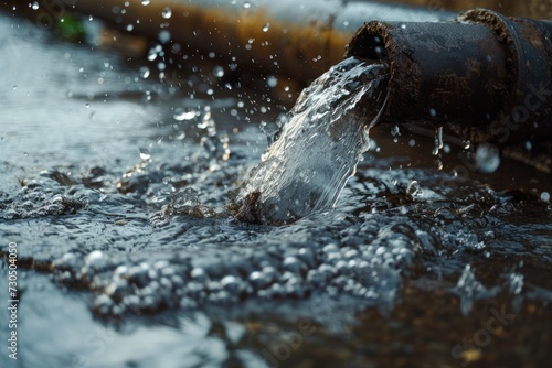 © LimeSky, Obraz premium PVC pipe burst leaking waste water