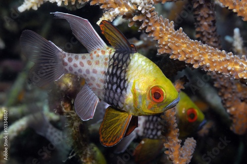 © kaschibo, Fototapeta premium Pyjama-Kardinalfisch (Sphaeramia nematoptera) im Korallenriff