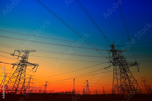 © pdm, Fototapeta premium Pylon, high-voltage tower sky background.