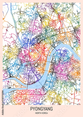 © Towseef Dar, Fototapeta premium Pyongyang North Korea City Map, district banner, business modern landmark, neighborhood paint travel, hometown downtown design, destination landmark