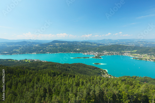 Fototapeta premium Pyramidenkogel, view of the Lake Wörthersee, Carinthia, Austria