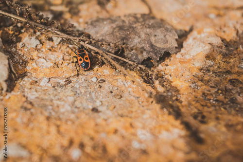 Fototapeta premium Pyrrhocoridae on a yellow stone