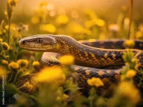 © Elias, Fototapeta premium Python in Sunflower Field: Rural Tuscan Serpent