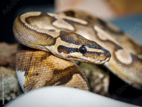 © Colombe Delons, Obraz premium Python royal en terrarium – Python regius, serpent constricteur d’élevage en captivité