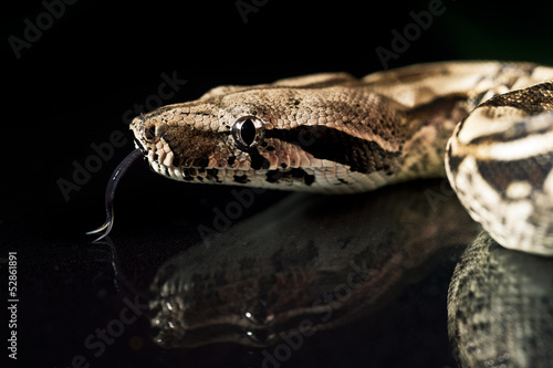 Obraz premium Python snake reptile close-up macro portrait on black