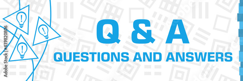 Naklejka premium Q And A - Questions And Answers Bulbs Blue Curves Triangles Horizontal