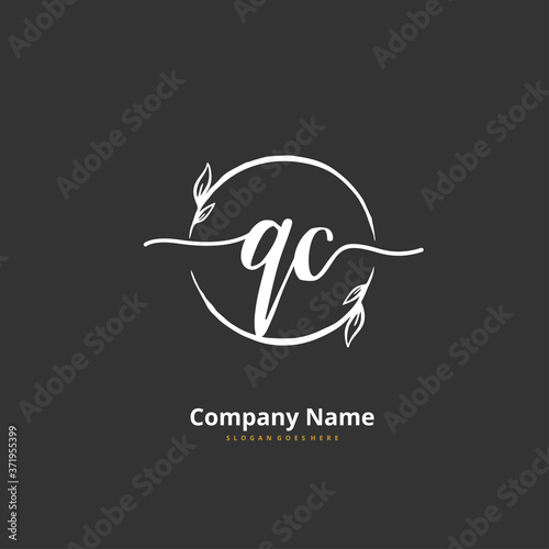 © D'Graphic Studio, Fototapeta premium Q C QC Initial handwriting and signature logo design with circle. Beautiful design handwritten logo for fashion, team, wedding, luxury logo.