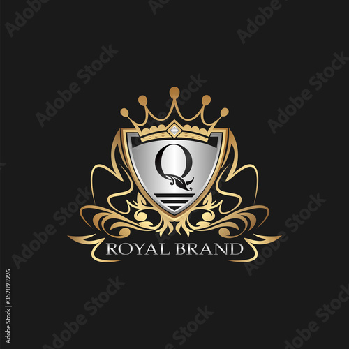 Fototapeta premium Q Letter Gold Shield Logo. Elegant vector logo badge template with alphabet...