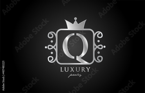 Obraz premium Q monogram silver metal alphabet letter logo icon. Creative design with king...