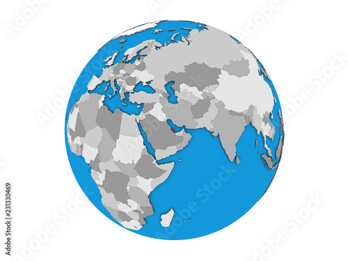 © harvepino, Naklejka premium Qatar on blue political 3D globe. 3D illustration isolated on white background.