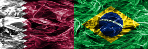 © Vlad, Fototapeta premium Qatar vs Brazil, Brazilian smoke flags placed side by side. United Arab Emirates. UAE.