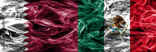 Obraz premium Qatar vs Mexico, Mexican smoke flags placed side by side. United Arab Emirates. UAE.