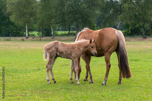 Fototapeta premium Qauter Horse Stute mit Fohlen