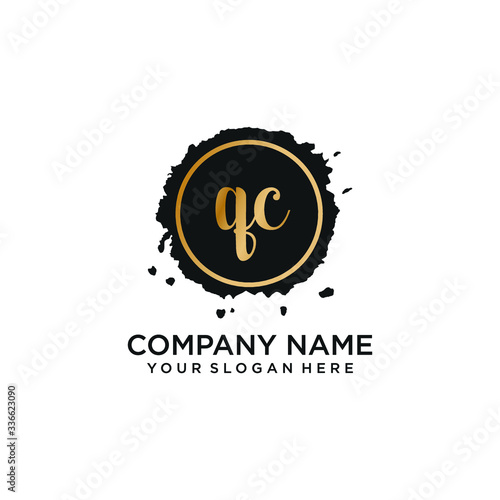 Naklejka premium QC initial Handwriting logo vector template