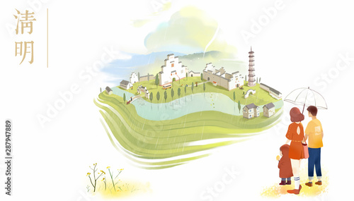 Fototapeta premium Qingming Festival, Qingming Festival, rain, return home, visit relatives,...