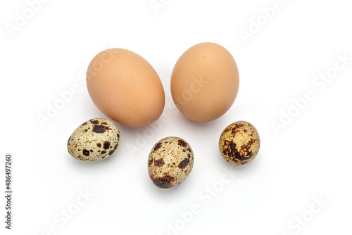 © Sirochuk, Obraz premium quail and chicken eggs on a white background