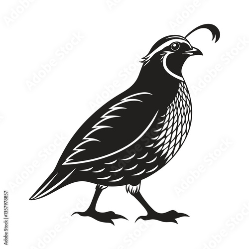 Obraz premium Quail Bird Illustration - Black and White Vector Art for Wildlife Designs