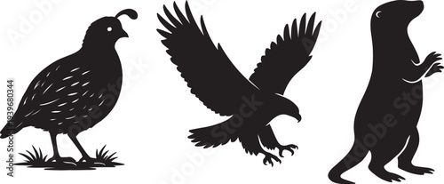 © Art and png , Obraz premium Quail, Eagle, and Otter Silhouettes