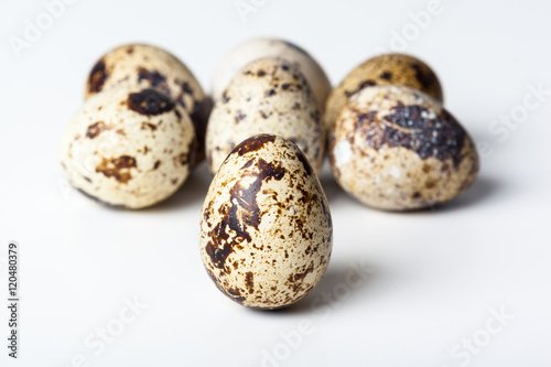 © fotofabrika, Fototapeta premium Quail eggs are isolated on a white background
