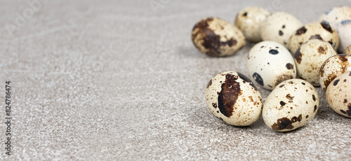 Fototapeta premium Quail eggs close-up on a gray background.