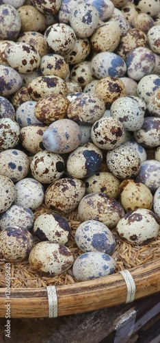 Fototapeta premium quail eggs in a basket