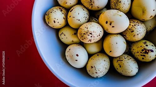 Obraz premium Quail eggs in bowl on table