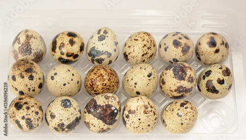 © Antiqva, Obraz premium Quail eggs in plastic packaging