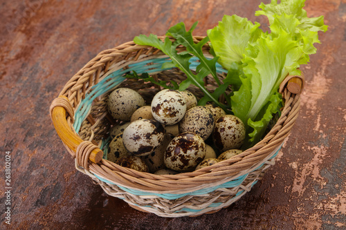 © Andrei Starostin, Obraz premium Quail eggs in the basket
